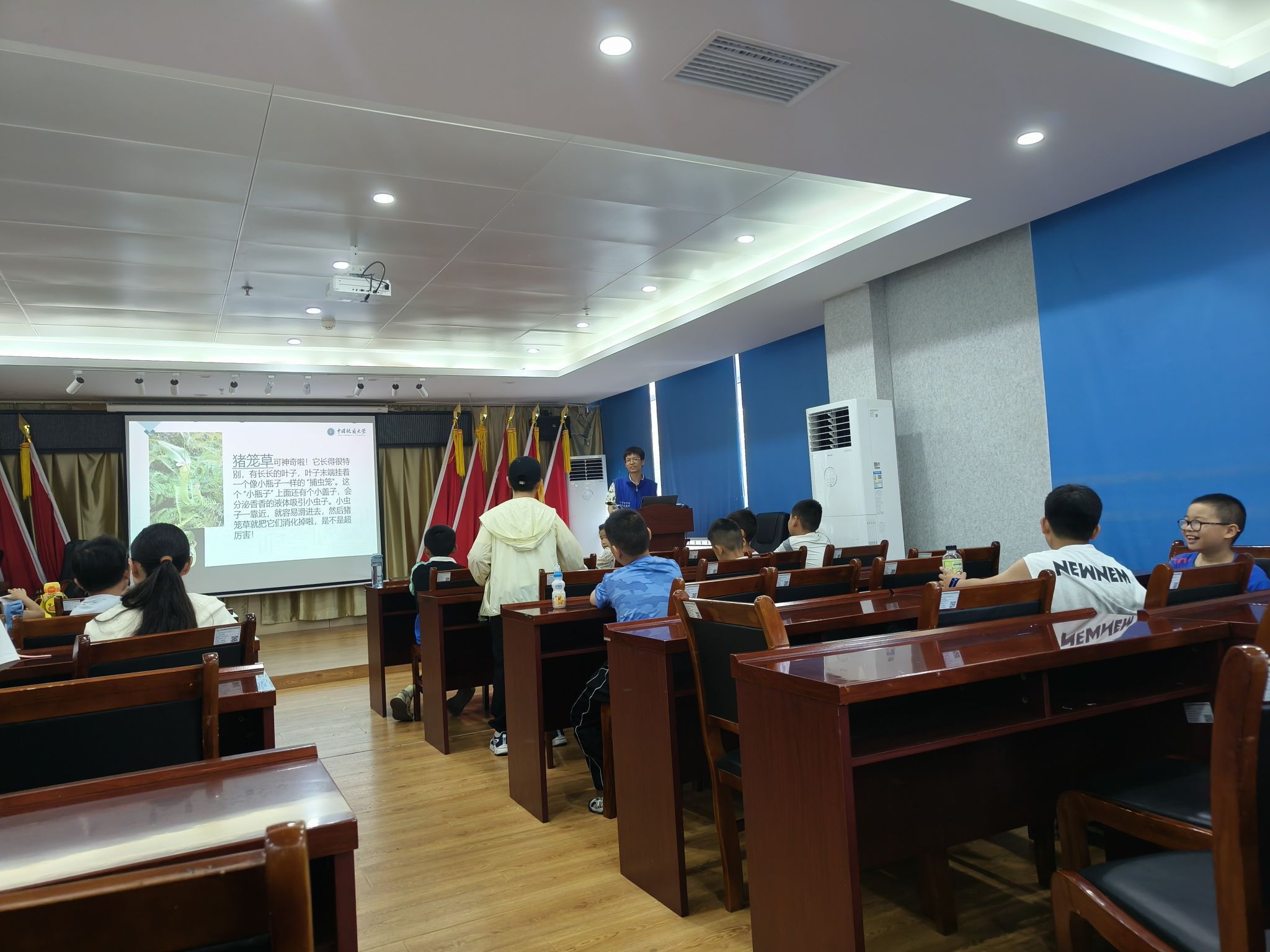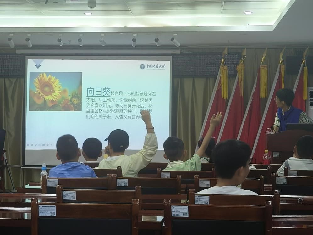 课堂从“你认识几种植物?”这样简单的问题开始,他们纷纷回忆起身边的花草,细数那些曾经悄悄触碰过的绿意。在志愿者温柔的讲述中,蒲公英的种子像小伞兵飞舞,含羞草羞涩低垂,还有那些会“吃虫”的神奇植物,仿佛带着生命的秘密轻声细语。