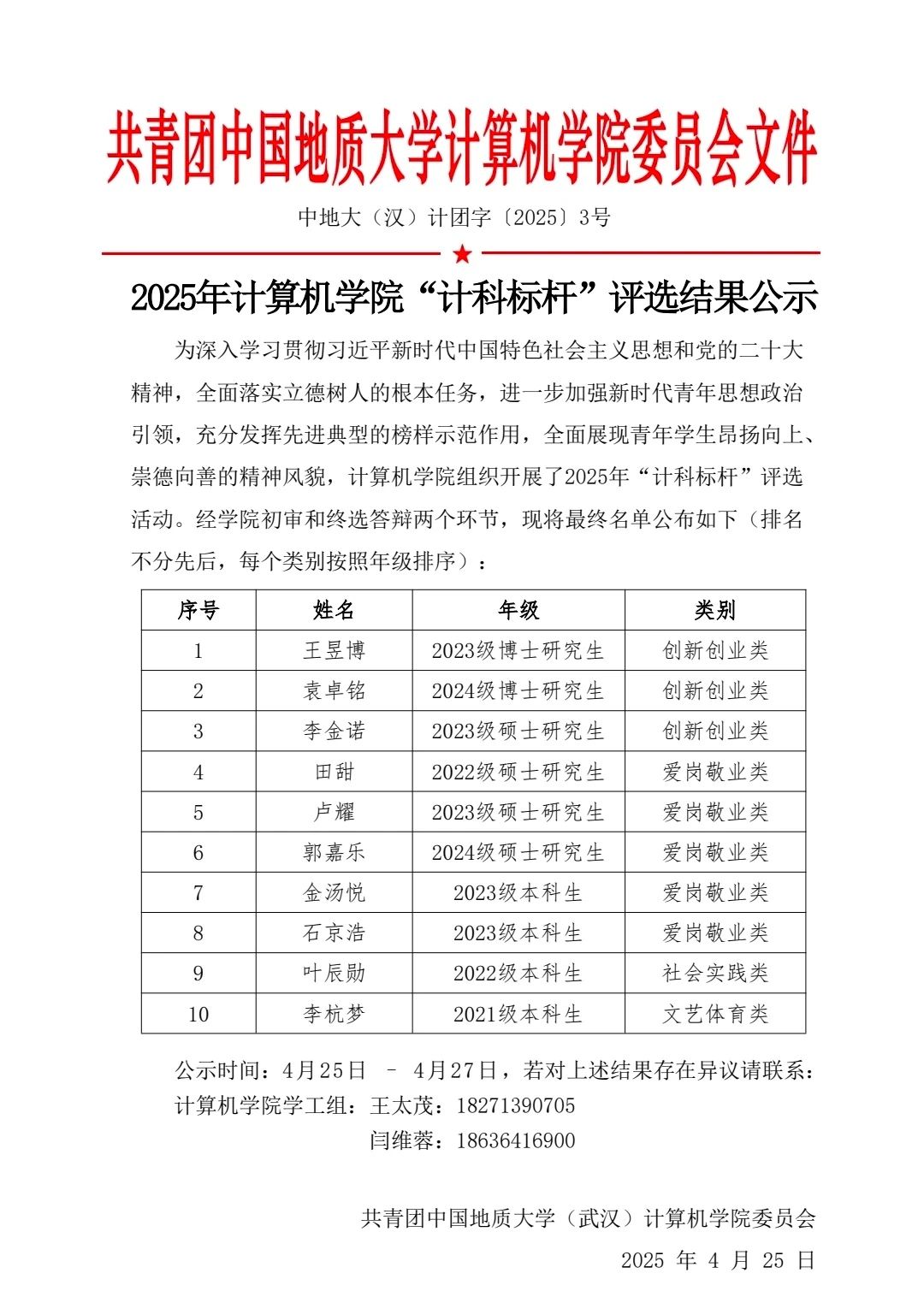 2025年电影天堂 “计科标杆”评选结果公示
