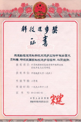 “九五”期间,攻克网络海量异构数据的存储、管理、分析、显示等关键技术问题,自主研制了国内第一套大型GIS软件平台MapGIS,总体性能“达到国外工作站GIS软件水平”(1995年)。实现了“空间相关最久未用”空间数据缓冲区淘汰算法、不规则图幅建库和数据无缝连接等创新方法,使得“缓冲区分析、全库查询性能优于国外同类软件”(1999年)。该成果“对于地质工作应用技术的现代化以及研究水平的提高,研究周期的缩短具有重要意义”(1995年),结束了我国地质勘查、矿产资源开发利用、土地资源管理等方面长期依赖国外GIS软件的局面,荣获国家科技进步二等奖(2003年)。