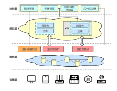 随着云边端系统一体化进程的推进,海量的设备需要接入系统以满足不同的业务的需求。然而大规模的设备使得现有的管理方法往往会面临着难度大、成本高、效率低等诸多挑战。软件定义允许使用软件去定义系统的功能,用软件给硬件赋能,进而解耦上层应用软件和底层硬件资源之间的紧密关系,实现对硬件资源的统一管控、按需分配按需配置与分配。因此如图4使用软件定义技术为云边端系统提供软件分发、路由选择、服务升级等全栈式管理有效提升系统运行效能并降低系统维护开销,也因此软件定义被视为云边端系统一体化的重要基础技术。