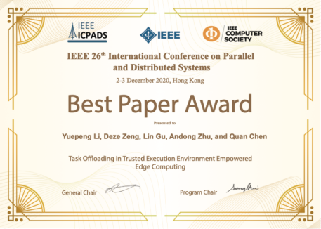 图13 ICPADS 2020最佳论文奖